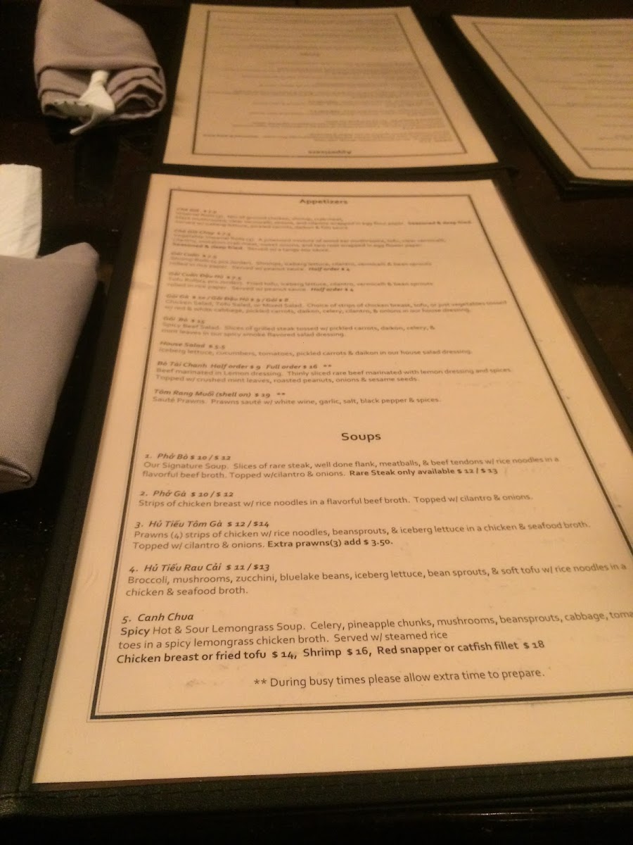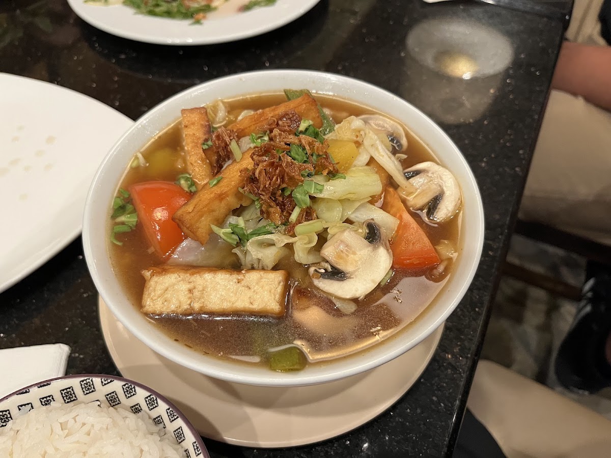 For those who prefer vegetarian options, consider the Veggie 'N Tofu Noodle Soup, a delightful medley featuring fresh vegetables and silky tofu. The clean, light flavors make it a refreshing choice, while their spicy hot and sour Tamarind Canh Chua Soup is a delightful option for those looking to awaken their palate with a bit of heat. Priced at $20, this dish showcases a perfect balance of spice and tang that will leave you wanting more.